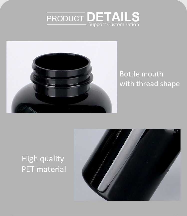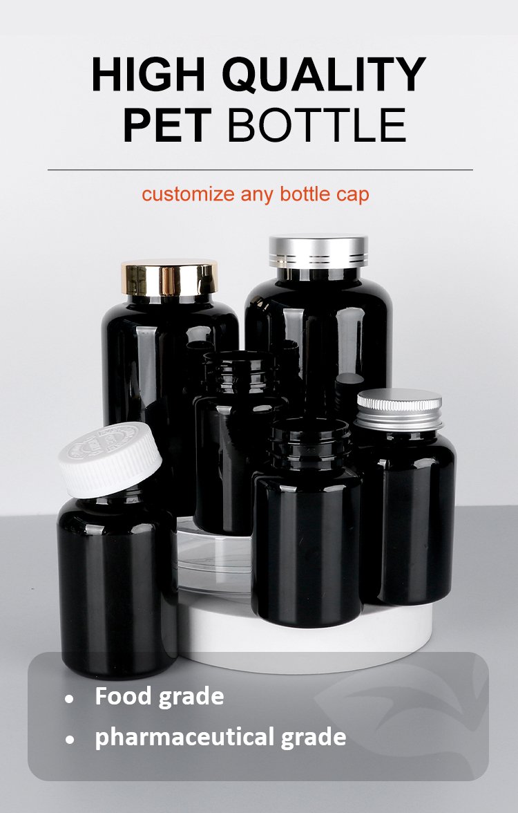 Home PHARMACEUTICAL Black PE Food Grade Vitamin Pharmaceutical pill Bottles customizable