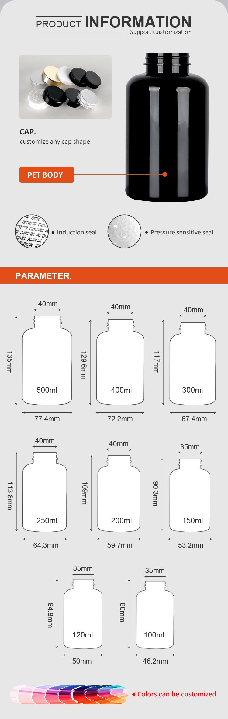 Spray matte texture color PET plastic sugar supplement nutrition medical empty bottle support customized