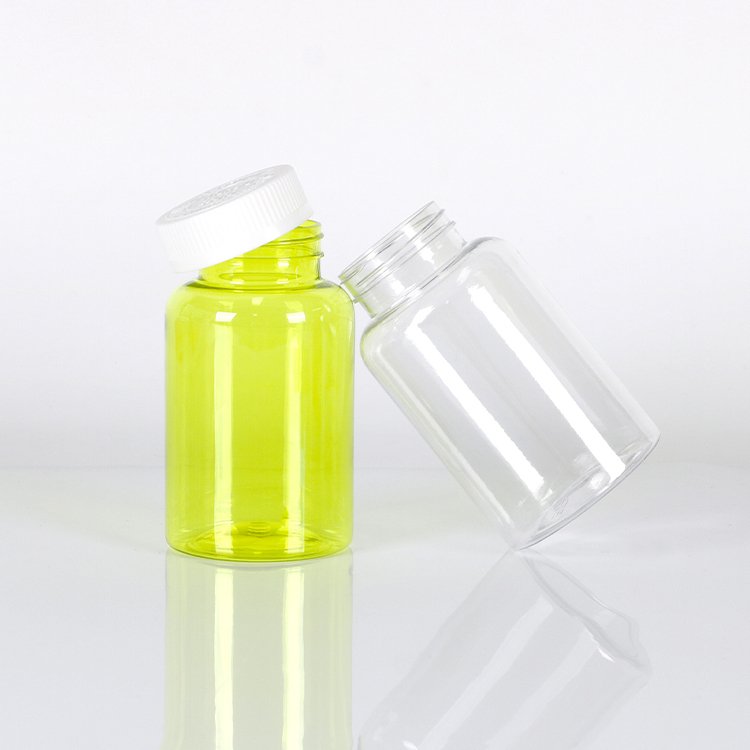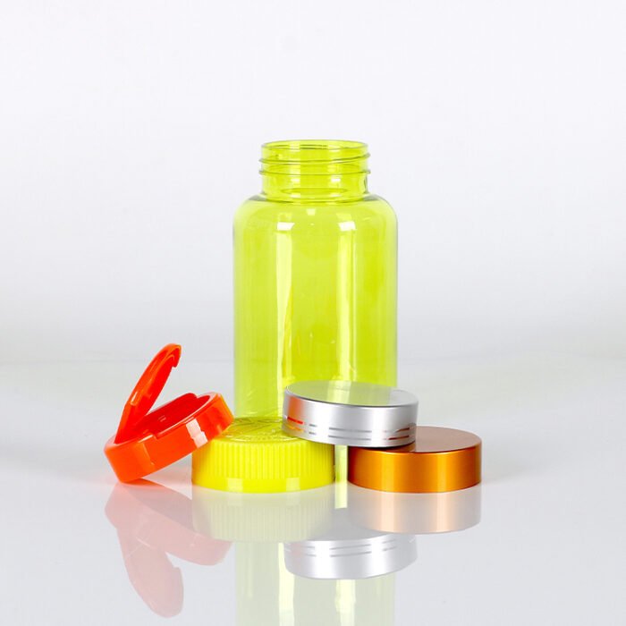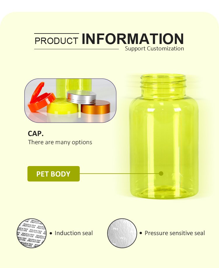 Yellow transparent plastic medical bottle double layer supplement nutrition product/ food grade