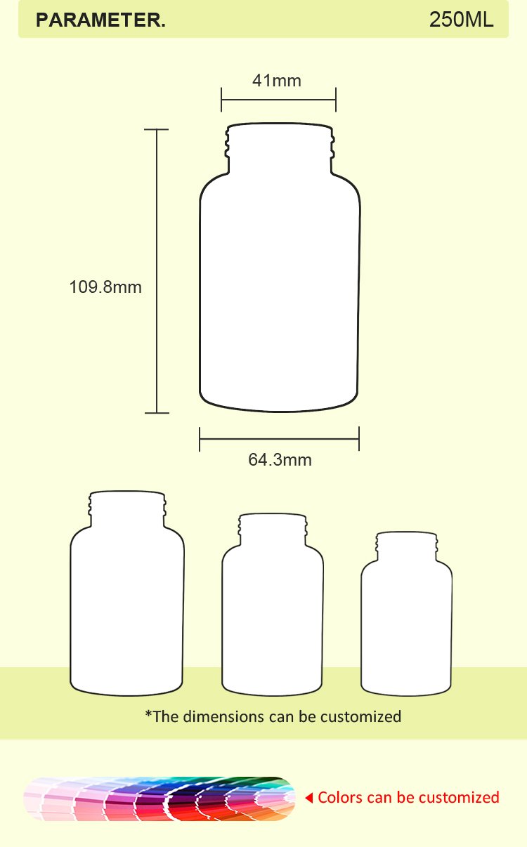 Spray matte texture color PET plastic sugar supplement nutrition medical empty bottle support customized