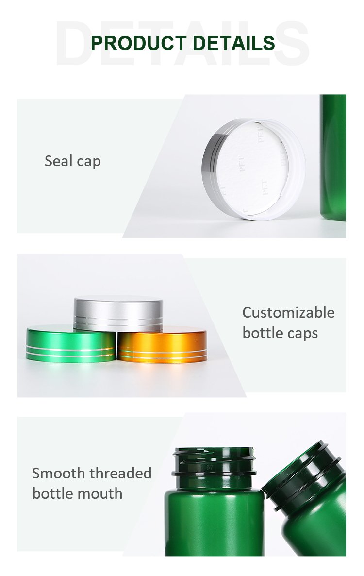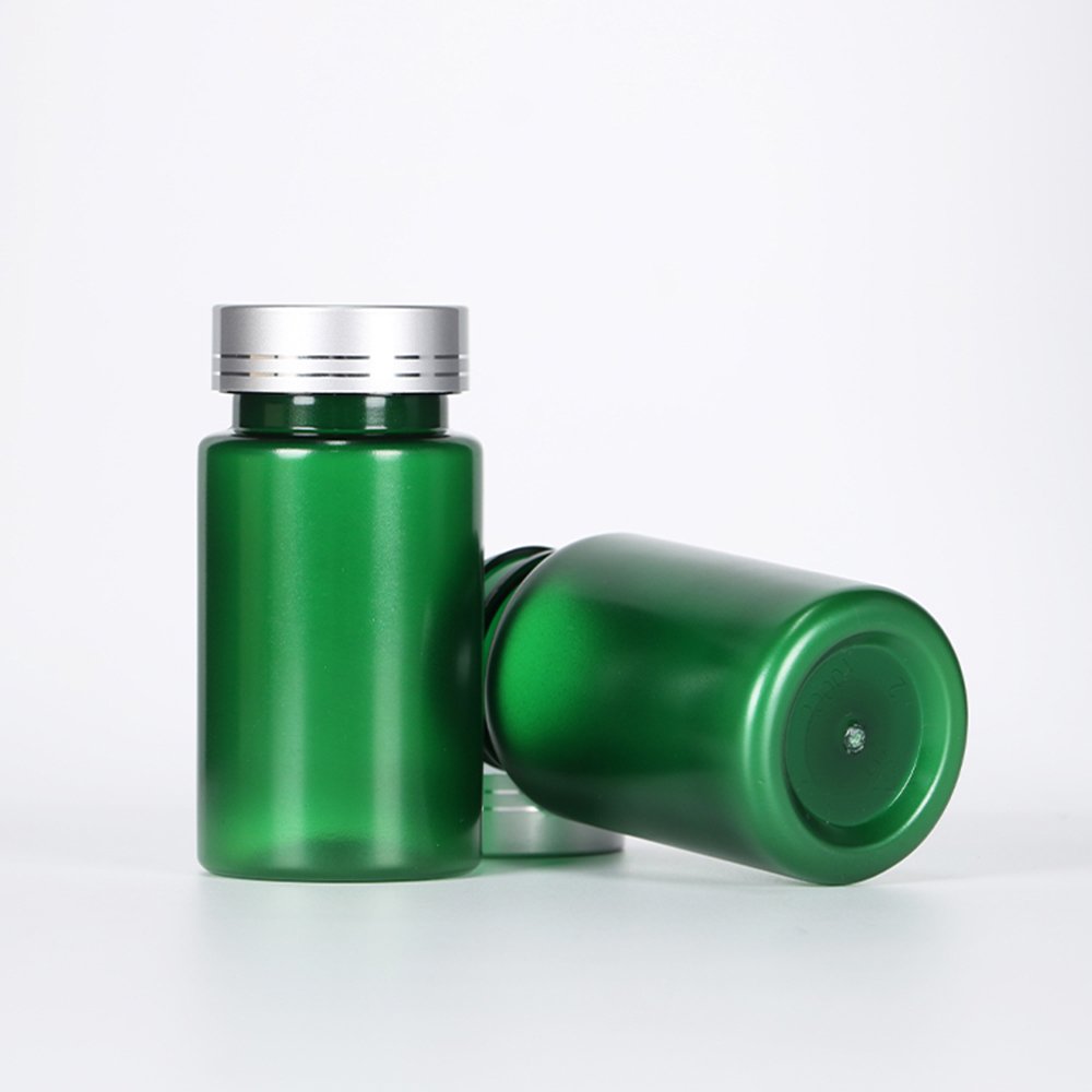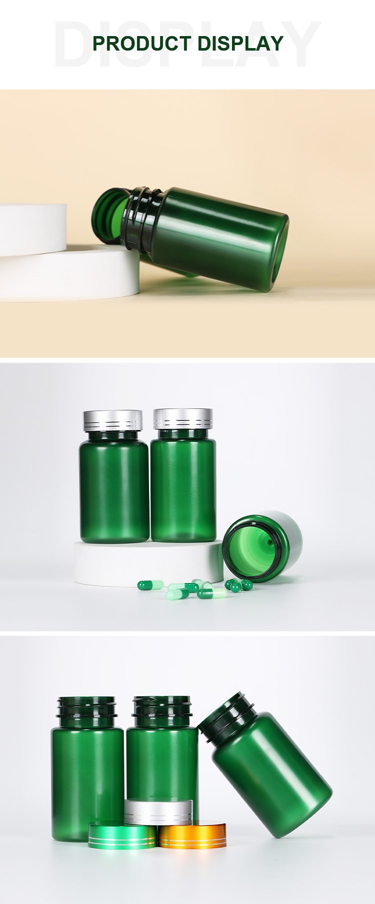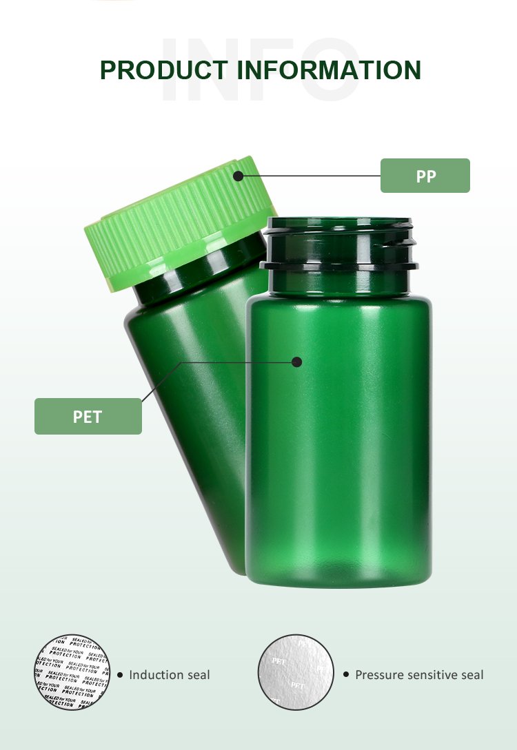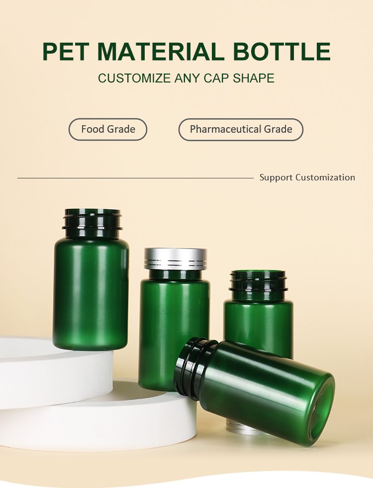 glossy transparent green color PET plastic supplement nutrition medical empty