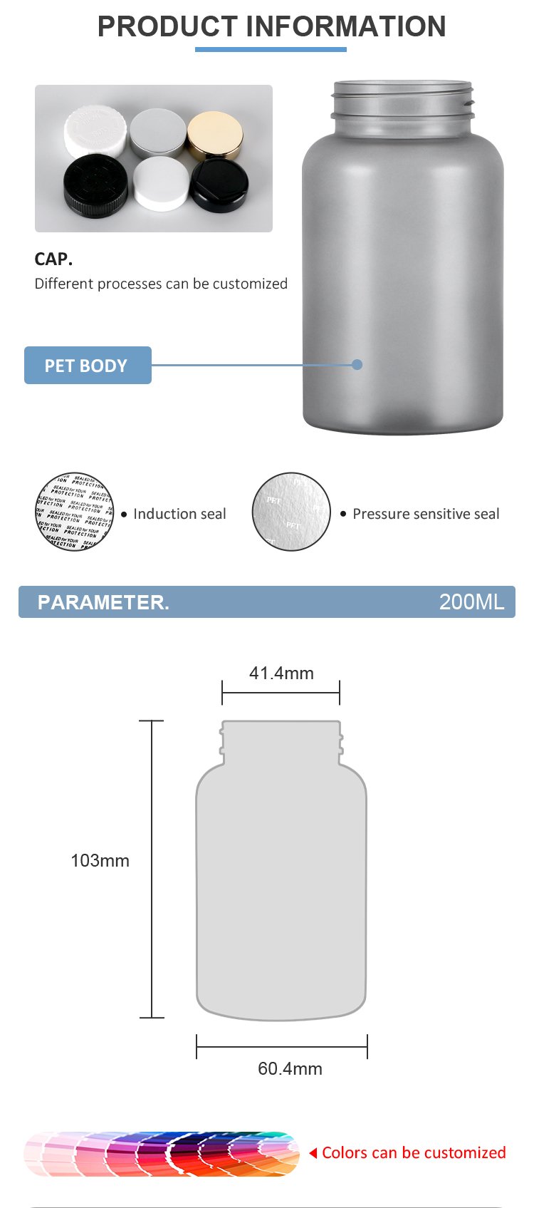 Spray matte texture color PET plastic sugar supplement nutrition medical empty bottle support customized