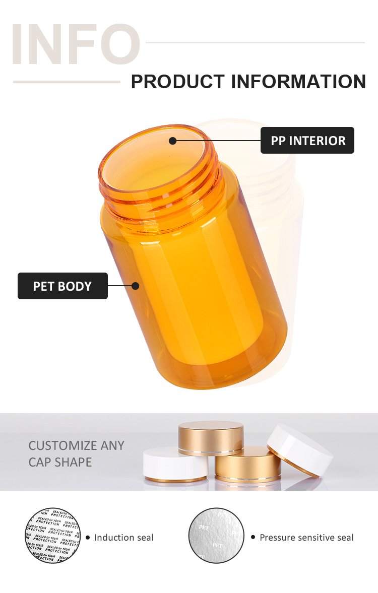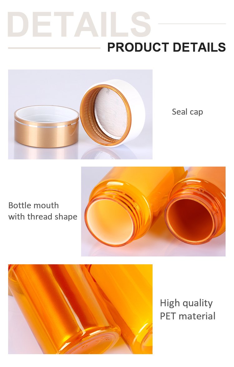 Yellow transparent plastic medical bottle double layer supplement nutrition product/ food grade